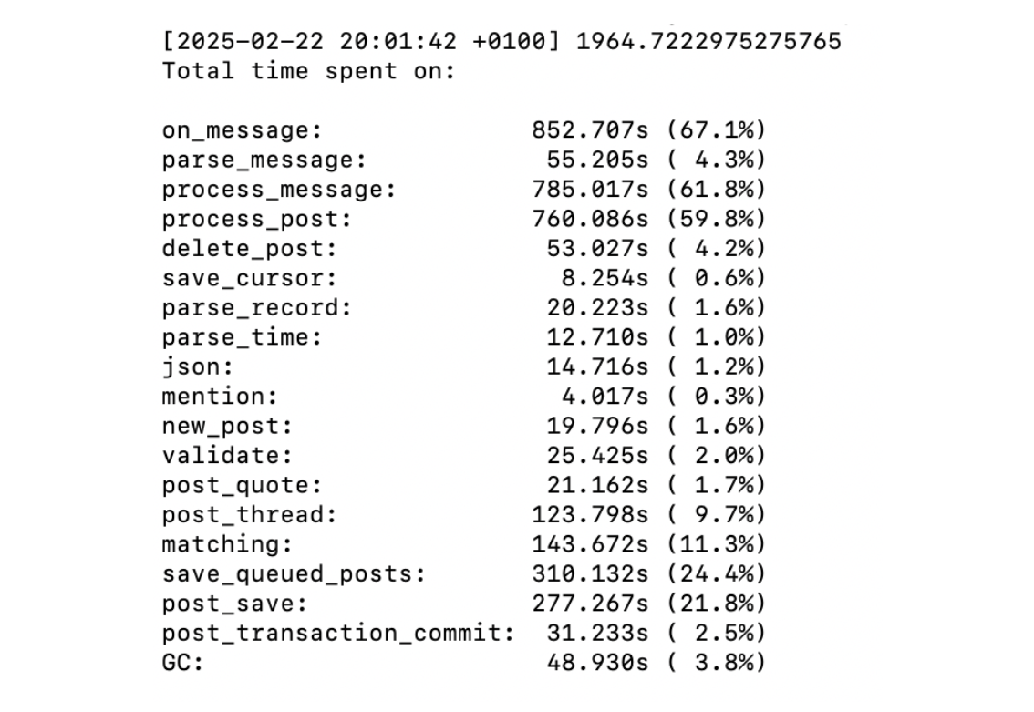 I haven't enabled it on production yet though, because there are some edge cases I need to get fixed, and I only used it for manual feed rebuilding so far. So as the next step, I enabled that Rust module in the firehose process. (I'd love to eventually make that available as a gem you can easily add to your app.)